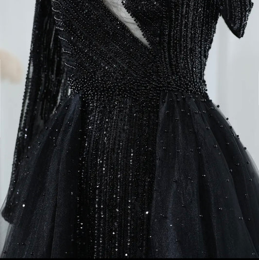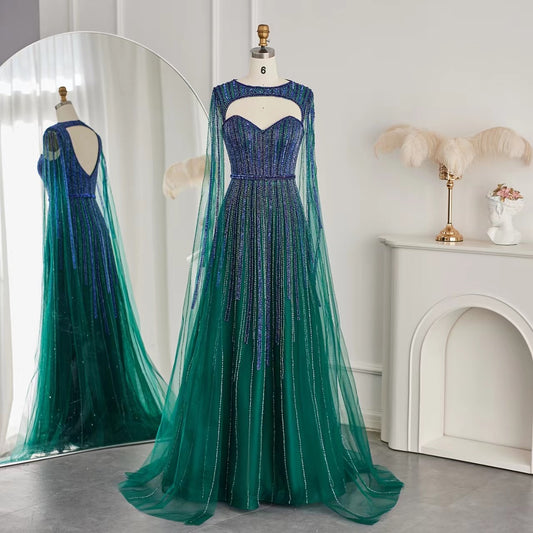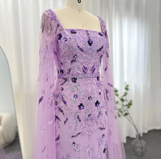 Mermaid Evening Ball Gown Embellished High Split Cape Sleeves Long Maxi Dress For Wedding Guest Gala Gown