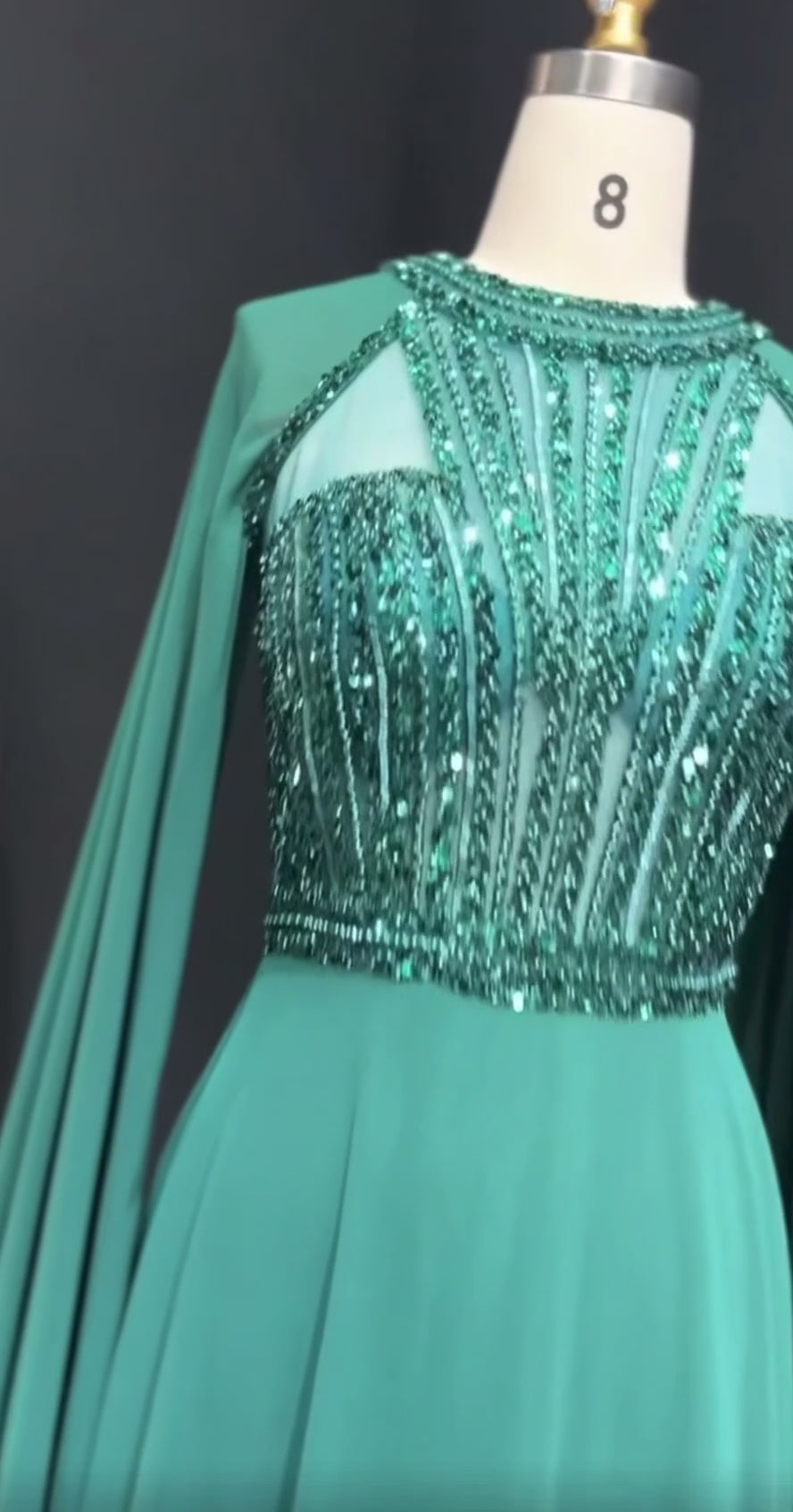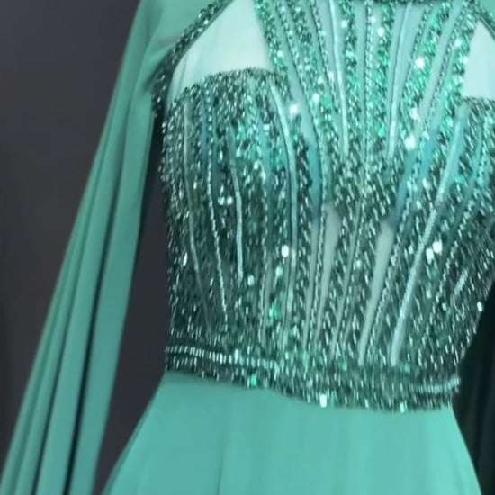 Emerald Green Sequined Evening Dress with Cape Sleeves Women Wedding Guest Gown Gala Gown