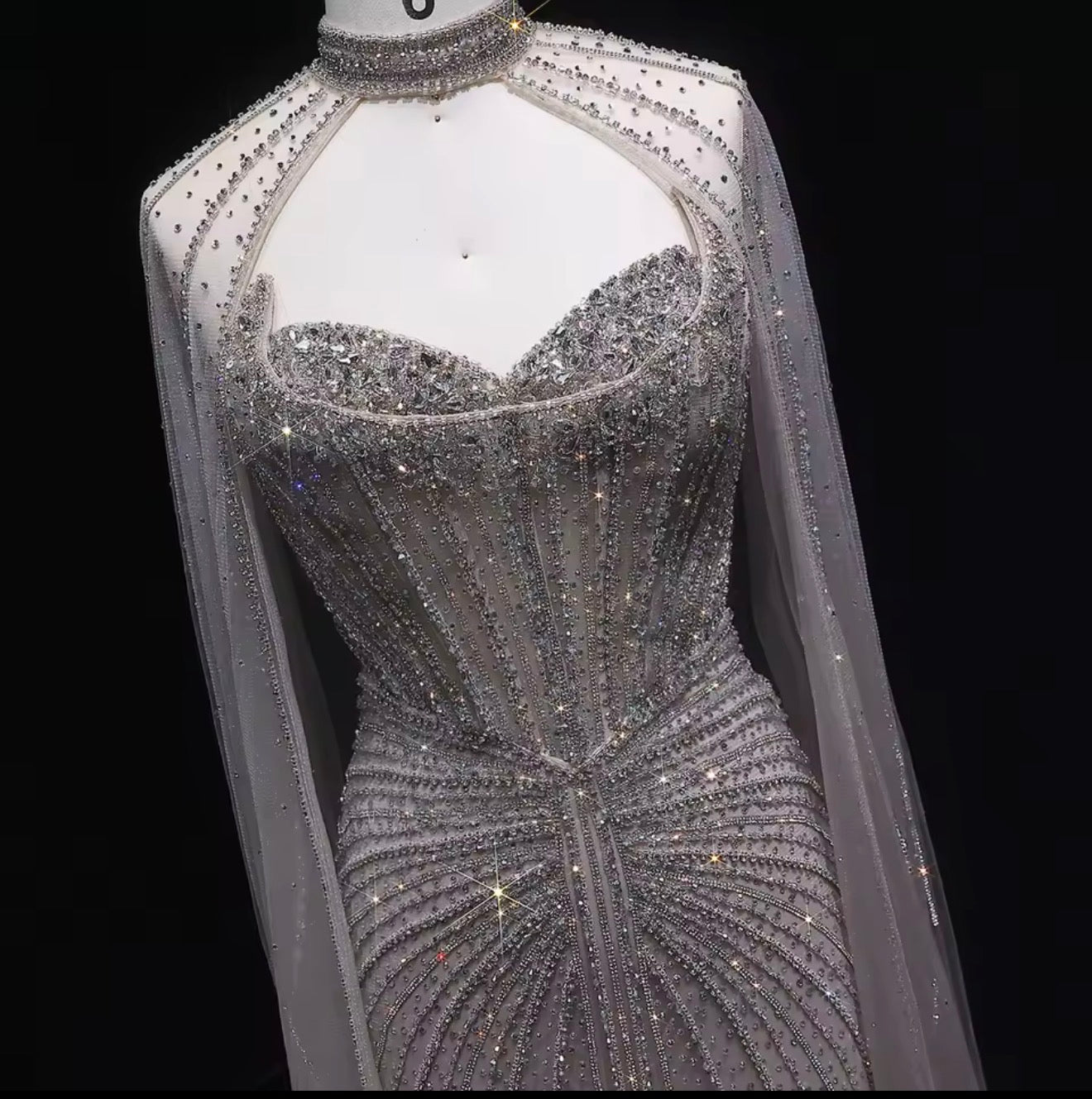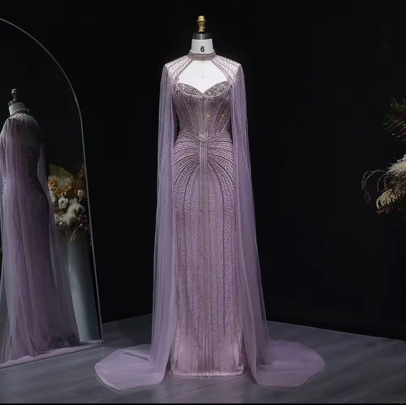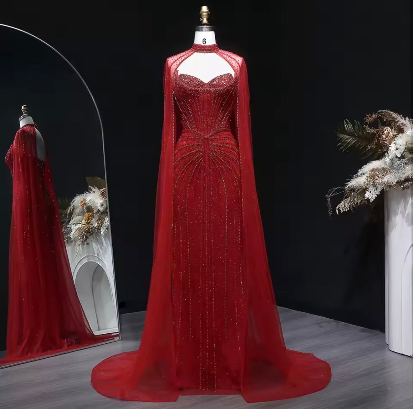 Elevate your evening look with this customized evening dress. This dress is perfect for weddings and special events. Make a glamorous entrance and stand out in this elegant and sophisticated gown.