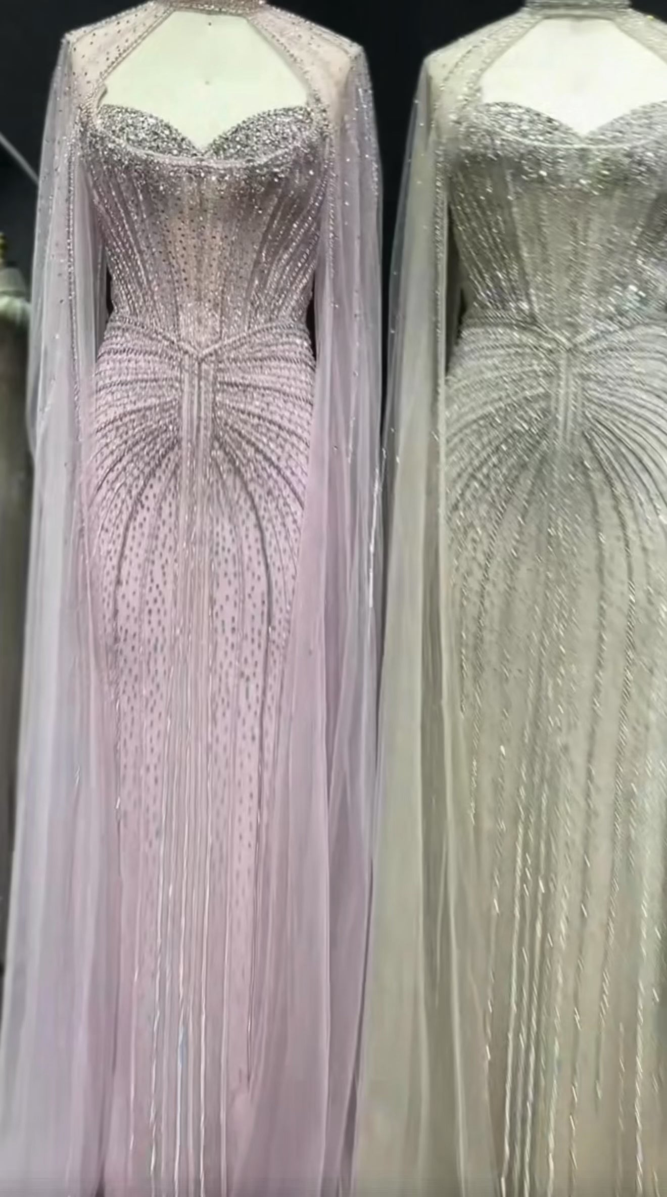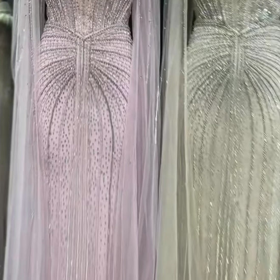 Embellished Sage Green Evening Dress with Cape Sleeves Guest of Wedding Ball Gown