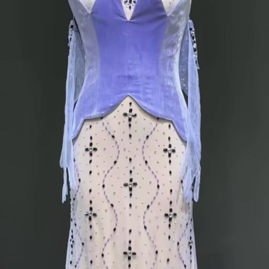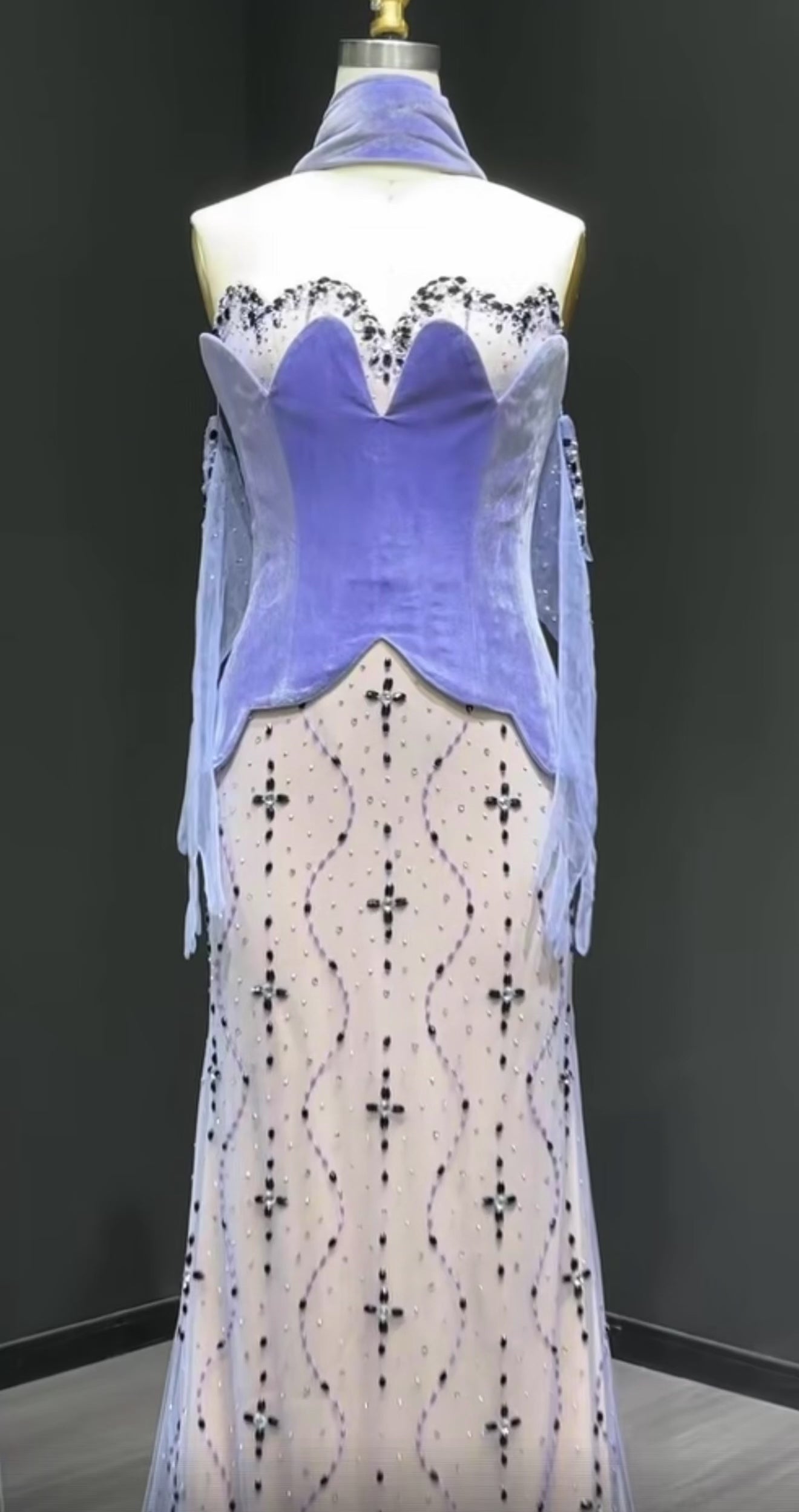 Two Piece Purple Velvet Mermaid Evening Dress with Gloves and Scarf for Gala Ball Gown Wedding Party Gown